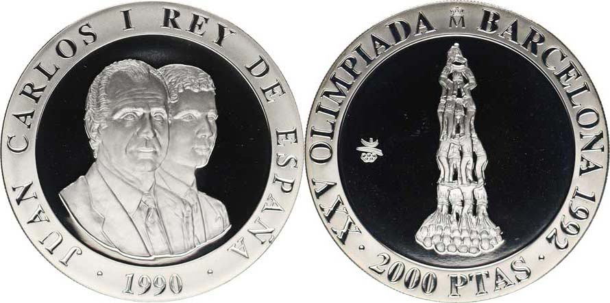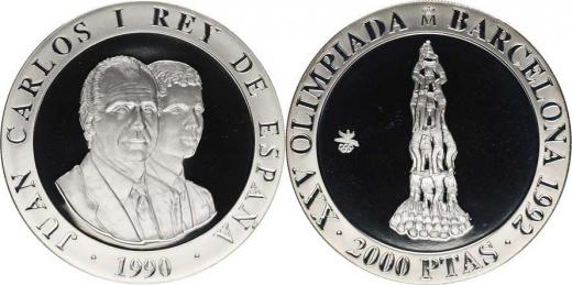 2000 Pesetas 1990 - OH 1992, lidská pyramida KM 863 Ag 925 26,70 g kapsle