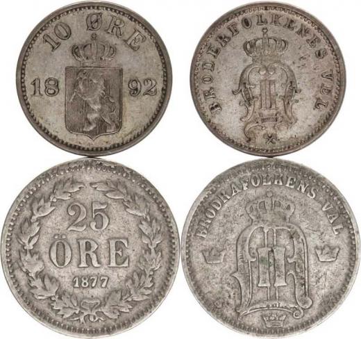 25 Öre 1877 EB KM 738 Norsko - 10 Öre 1892 KM 350 2 ks