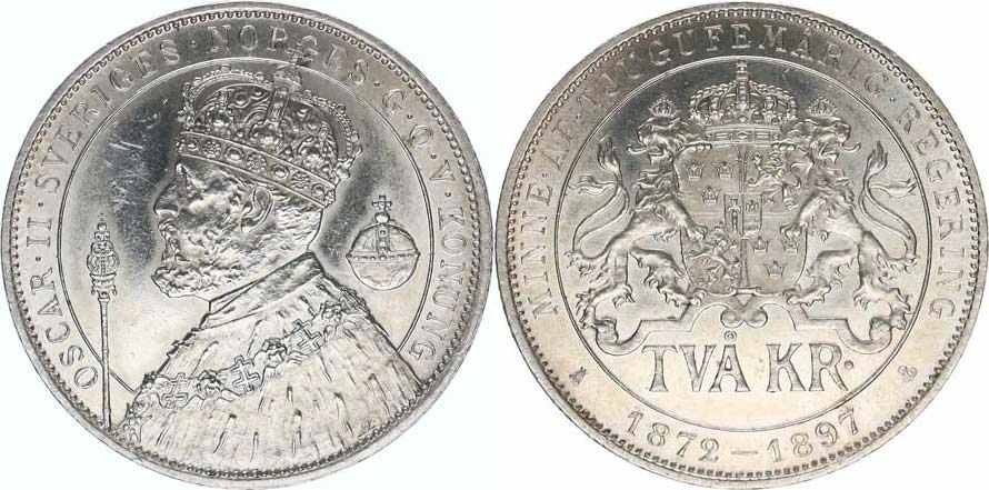 2 Kronor 1897 EB - Silver jubilee KM 762 Ag 800 15 g
