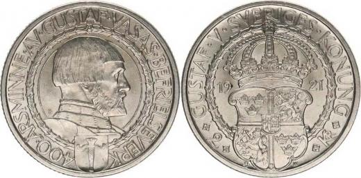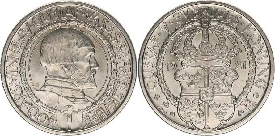 2 Kronor 1921 W - Gustaf Vasas KM 799 Ag 800 15 g
