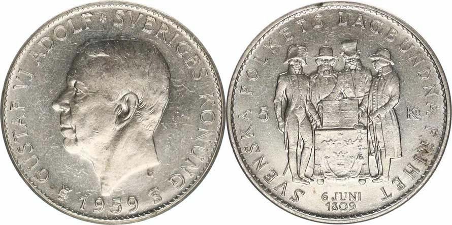 5 Kronor 1959 TS - Konstituce KM 830 Ag 400 18