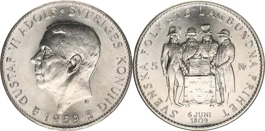 5 Kronor 1959 TS - Konstituce KM 830 Ag 400 18,00 g