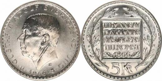 5 Kronor 1966 U - 100. výročí konstituce KM 839 Ag 400