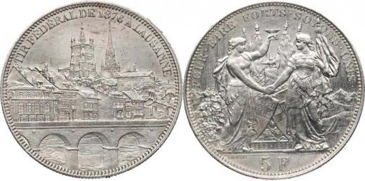 5 Franncs 1876 - strřelecký (pouze 20 000 ks) "R" KM S13; Richter SS 1560; Dav. ECT 387 24,893 g_vlas. rys.