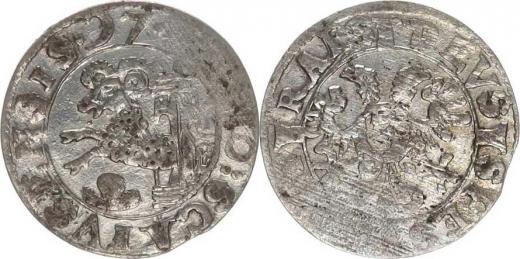3 kr. 1597 Sa 1631 var.: čísl. 9 ražená jako obrácené C 2,269 g_část nedoraž., jinak