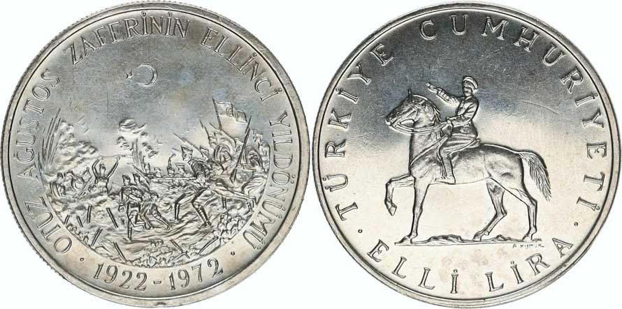 50 Lira 1972 - 50. výr. bitvy u Dumlupinar KM 901 Ag 83