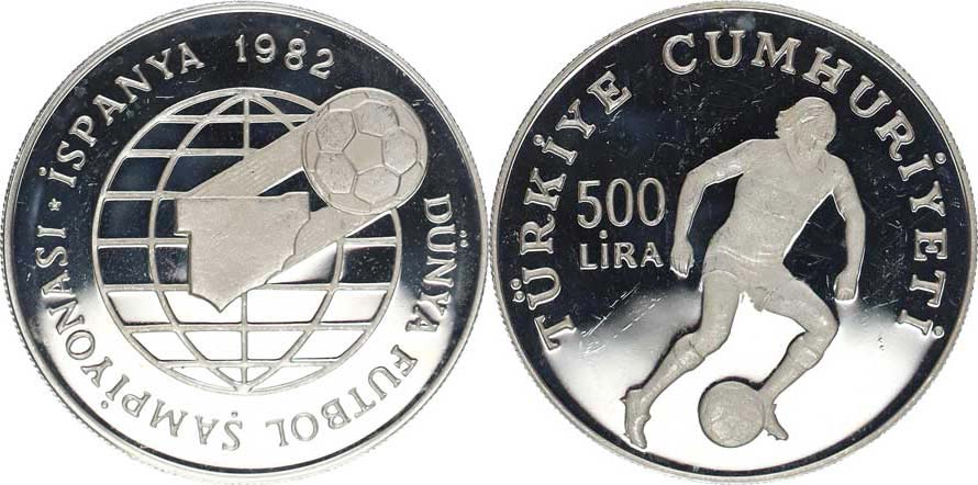 500 Lira 1982 - MS ve fotbale, hráč s míčem KM 952 Ag 92 5 23,33 g