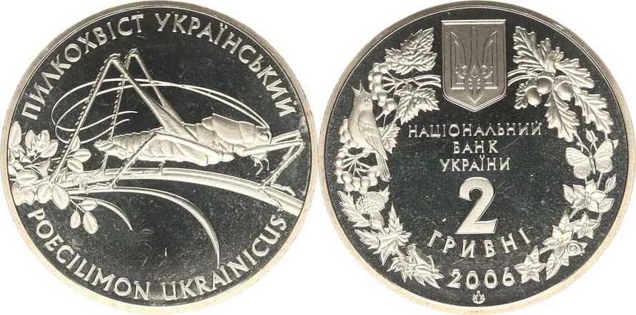 2 Grivni 2006 - kobylka Poecilimon Ukrajinicus kapsle