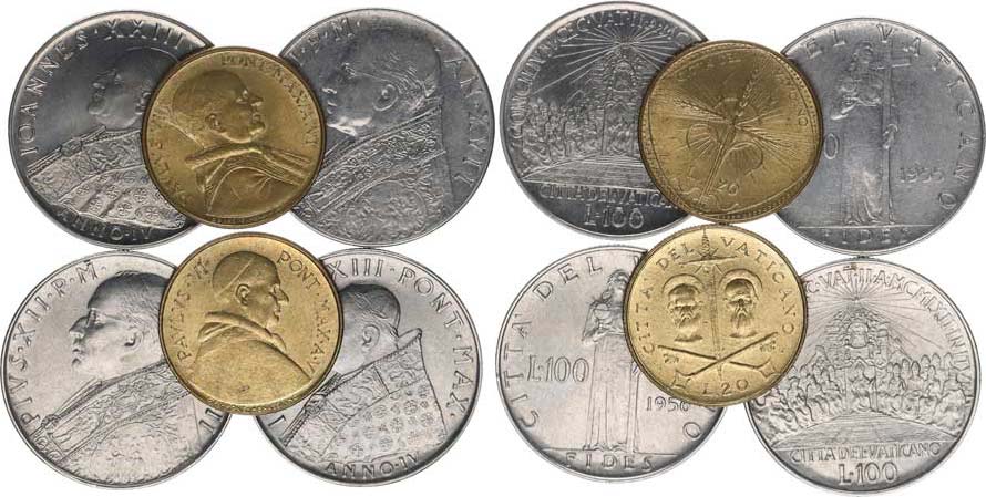 100 Lire 1955, 1956, 1962(2x); +20 Lira 1967, 1968 6 ks Y. 55, 73, 96, 104