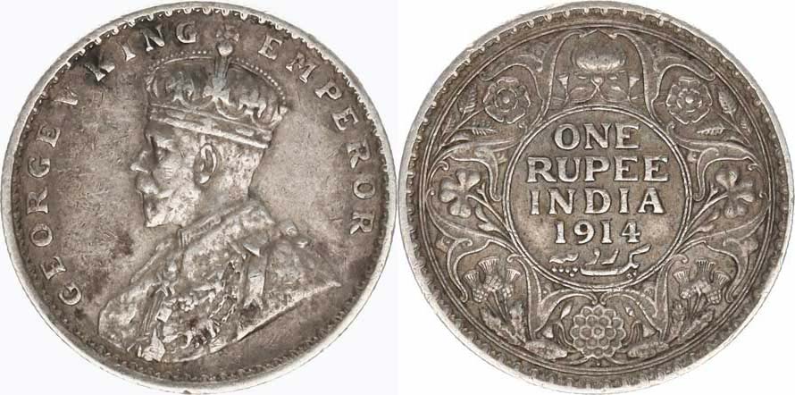 1 Rupee 1914 (b), Bombay KM 524 Ag 917 11,66 g