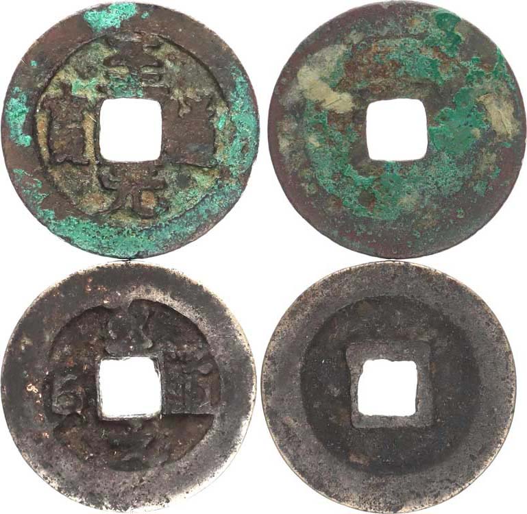 Juan-pao v písmu čen bronz 25 mm 3,42 g Hart: 16.35 Juan-pao v písmu čen bronz 31 mm 3,55 g Hart: 16,37 2 k s
