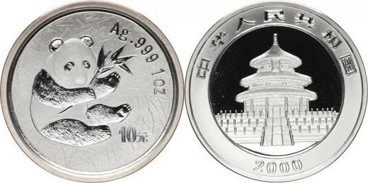 10 Yuan 2000 - Panda KM 1310 Ag 999 31,1 g kapsle