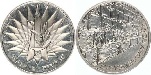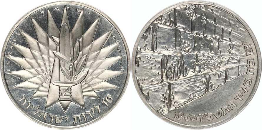 10 Lirot 5727 /1967 AD/ - Vítězství, Zeď nářků KM 49 Ag 900 26,00 g