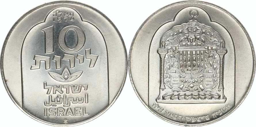 10 Lirot 5734 /1974 AD/ - 26. výr. nezávislosti KM 77 zn. hvě zdička Ag 900 26 g