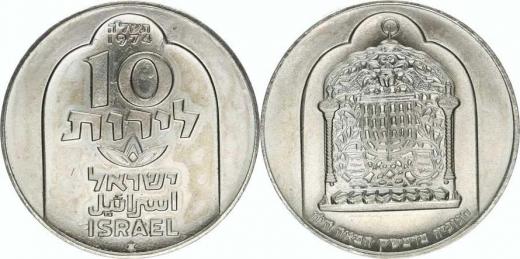 10 Lirot 5734 /1974 AD/ - 26. výr. nezávislosti KM 77 zn. hvě zdička Ag 900 26 g