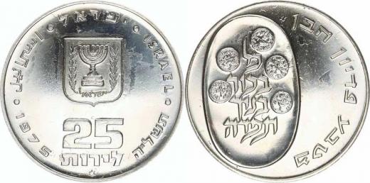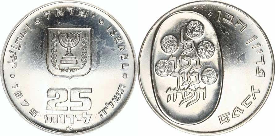 25 Lirot 5735 /1975 AD/ - Pidyon Haben KM 80,1 zn. hvězdička, hladká hrana Ag 900 26,207 g