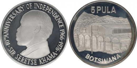 5 Pula 1976 - 10. výr. nezávislosti KM 9a Ag 925 28, 28 g kapsle