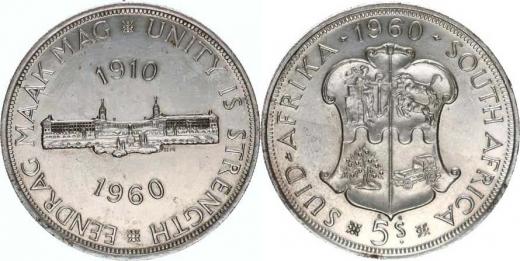 5 Shillings 1960 - 50. výročí unie KM 55 Ag 500 28,2 8 g