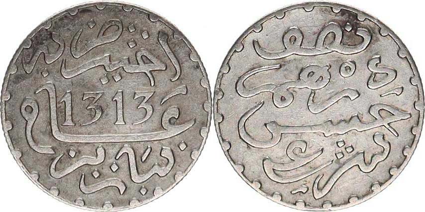 1/2 Dirham AH 1313 (1896 AD), Paříž Y. 4 Ag 835 1,46 g