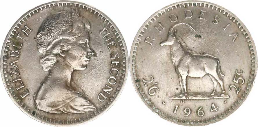 2 1/2 Shillings / 25 Cents 1964 CuNi KM 4; Schön 43 _hr., tém.