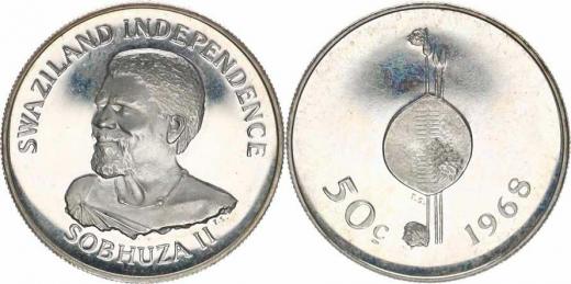 50 Cents 1968 - Sobhuza II. / nezávislost KM 4 Ag 800 10 ,39 g (10 000 ks)