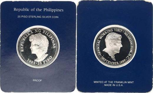 25 Piso 1986 FM - Corazon Aquino KM 246 Ag 925 18,41 g balení Franklin Mint