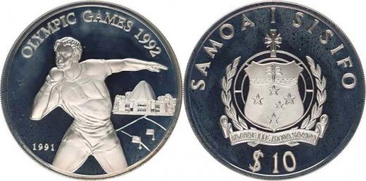 10 Tala 1991 - OH 1992, vrh koulí KM 82 Ag 925 31,47 g kapsle