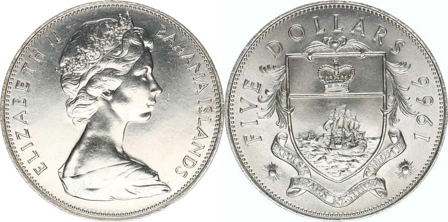 5 Dollars 1966 - erb s plachetnici KM 10 Ag 925 4 2,12 g