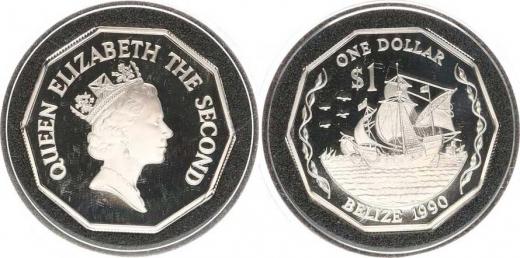 1 Dollar 1990 - Kolumbova loď KM 99a Ag 925 9,00 g (raž. 5 000 ks) kapsle