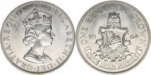 1 Crown 1964 - plachetnice v erbu KM 14 Ag 500 22,62 g