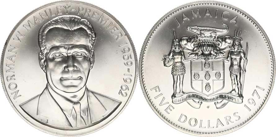 5 Dollars 1971 FM - Norman W. Manley KM 59 Ag 925 41,48 g