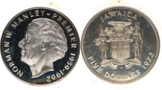 5 Dollars 1972 FM - Norman W. Manley KM 59 Ag 925 41,48 g (21 000 ks) kapsle