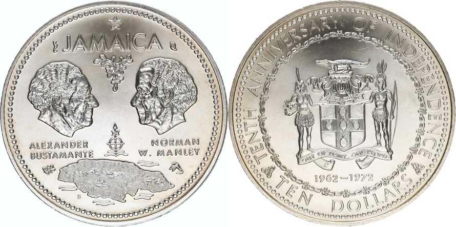 10 Dollars 1972 - 10. výr. nezávislosti KM 60 Ag 925 49,20 g