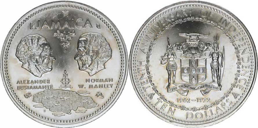 10 Dollars 1972 - 10. výr. nezávislosti KM 60 Ag 925 49,20 g