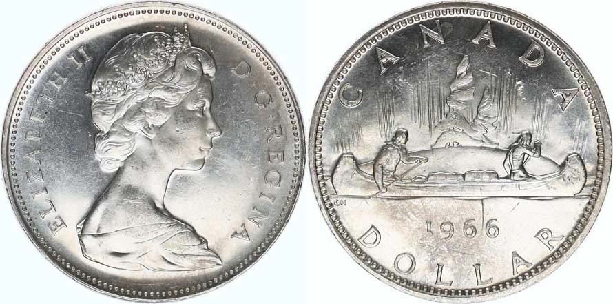1 Dollar 1966 - kanoe KM 64,1 Ag 800 23,33 g
