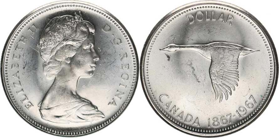 1 Dollar 1967 - 100. výročí konfederace KM 70 Ag 800 23, 33 g