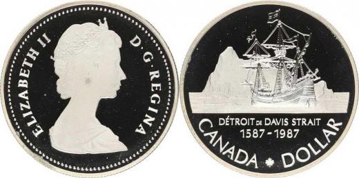 1 Dollar 1987 - Davis Strait, plachetnice KM 154 Ag 500 23,33 g kapsle
