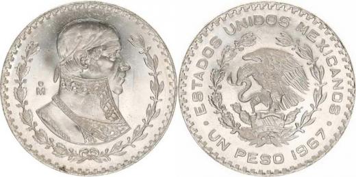 1 Peso 1967 Mo KM 459 Ag 0,100 16,00 g