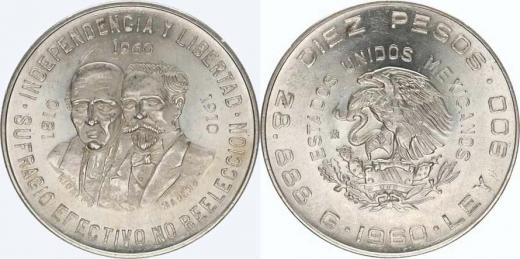 10 Pesos 1960 Mo - 150. výr. bitvy za nezávislost KM 476 Ag 900 28,88 g