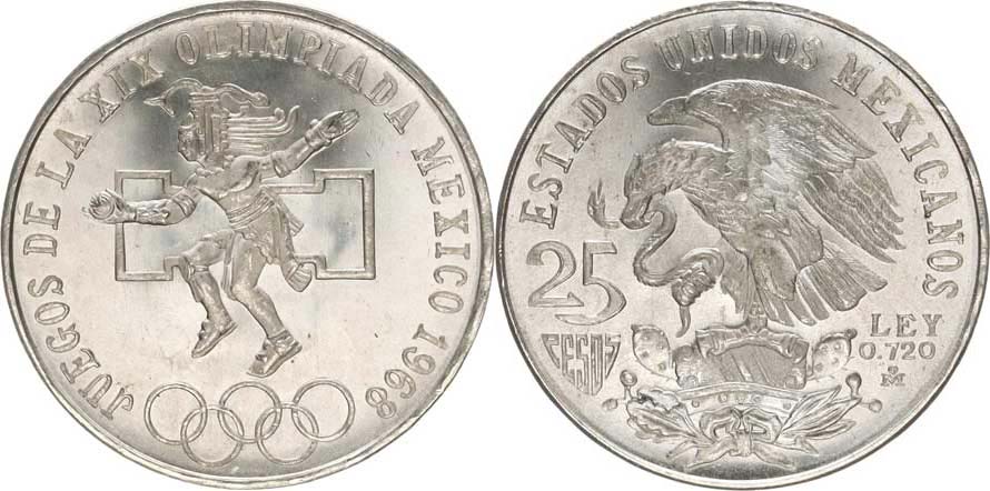 25 Pesos 1968 - OH Mexiko I. typ KM 479