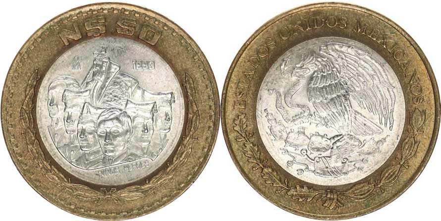 50 New pesos 1993 - Ninos Héroes KM 571 bimetal