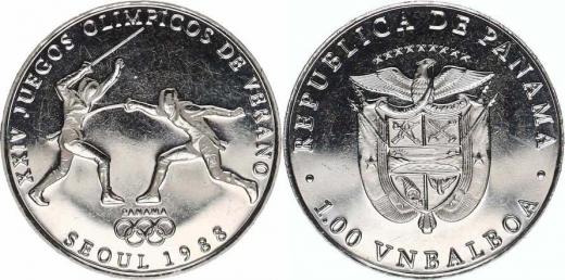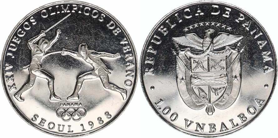 1 Balboa 1988 - XXIV. OH Seul 1988, šerm KM X M5 CuNi (50 000 ks) kapsle