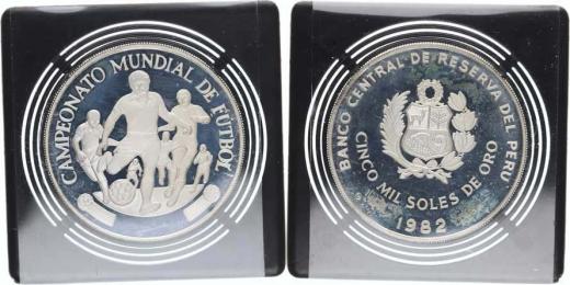 5 000 Soles 1982 - MS ve fotbale, šest hráčů KM 284 Ag 925 23,37 g (pouze 8 250 ks)