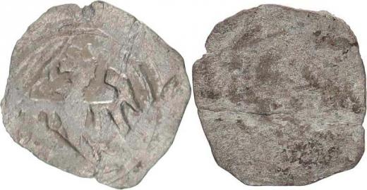 Čtyřhranný peníz s hladkou štíhlou orlicí staršího typu (Markrabs ká mincovna v Brně) Sejbal 1965, VIII typ_ohyb