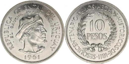 10 Pesos 1961 - El Gaucho KM 43 Ag 900 12,50 g