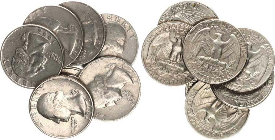 1/4 Dollar 1965(2x), 1972, 1974, 1987 P, 1997 D, 1998 P 7 ks