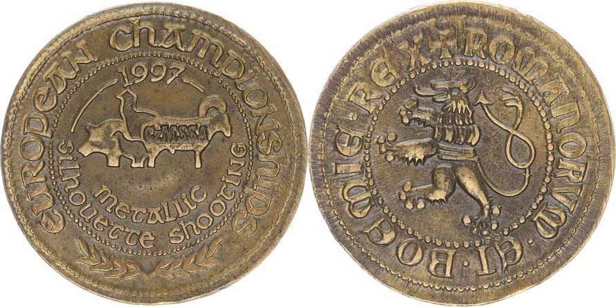Mistrovství Evropy na kovové siluety 1997 (v Kněžmostě), anglický opis / Tlustý pražský groš sign. na hr. HP bronz 41 mm 4 7 g