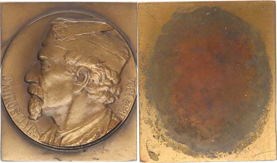 Miroslav Tyrš 1832-1884, Portrét zleva v sokolské čepici jednostr. bronzová plaketa 52x60 mm