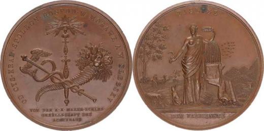 Záslužná medaile moravskoslezské císařsko-královské zemědělské sp olečnosti, Pod Božím okem alegorie, česko-němec. text / ZÁSLUZE - DEM VERDIENSTE, alegorie zemědělství sign.: WEISS Cu 62 mmFr +S: 5071