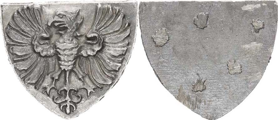 "Slezská orlice" Al odlitek, tvar štítu 71x61 mm - vysoký relié f bez textu